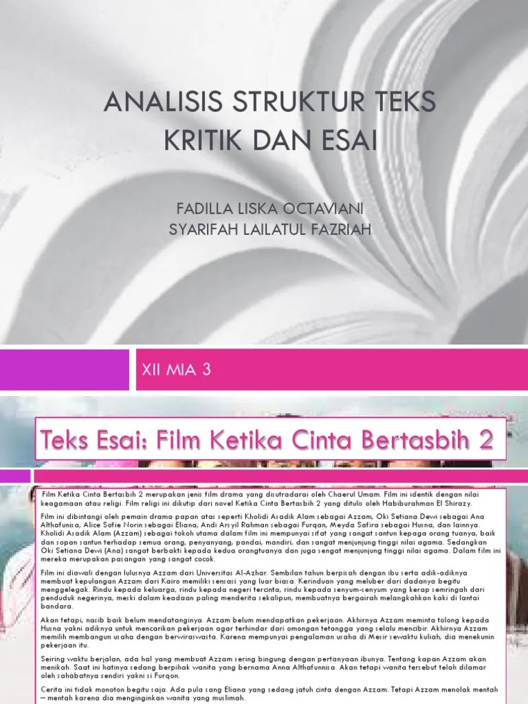Sehingga gagasan dapat dicerna dengan baik oleh pembaca. Anda mungkin sering mendengar atau menjumpai tulisan kritik sastra dan esai dalam media cetak maupun media elektronik. Contoh kritik cerpen "pak muh". Contoh kritik dan esai kritik. Menggunakan kata rujukan atau referensi.